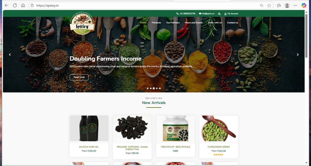 The ICAR-Indian Institute of Spices Research, Kozhikode, launched https://spiisry.in, an online portal designed to connect farmers, start-ups, and consumers across India. It features over 150 agri-based products, including whole spices and blends, bio-fertilizers, planting materials, and wellness items developed by ICAR institutes and incubated start-ups. The portal also promotes start-up development, technology marketing, and facilitates nationwide delivery of farm products.