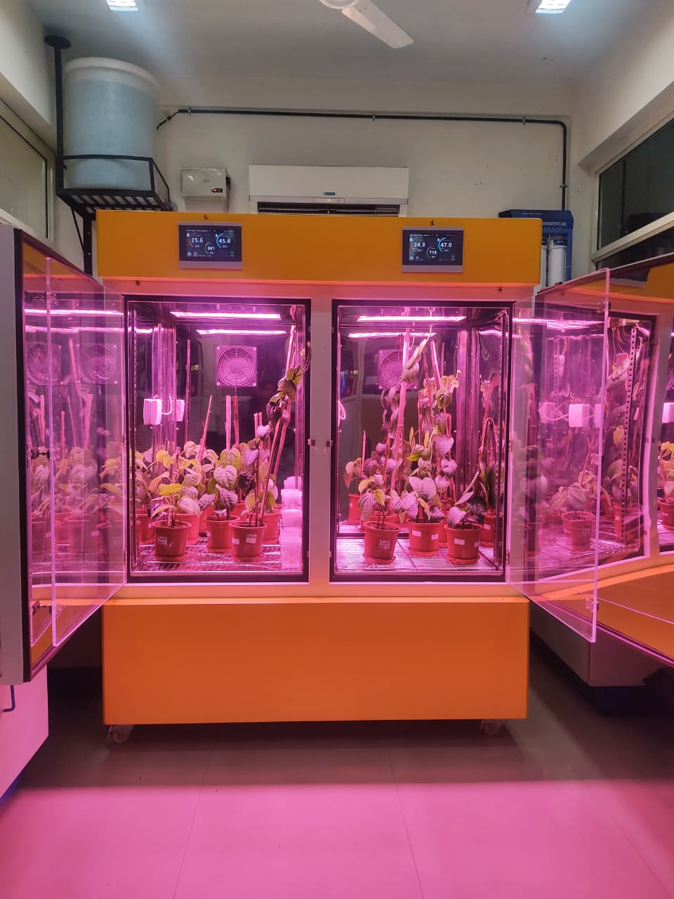 The combined control of thermal, photic, and atmospheric inputs enables accelerated vegetative growth and the induction of early reproductive development in diverse plant species, making the system highly suitable for speed breeding, phenotyping, and controlled-environment experimentation.